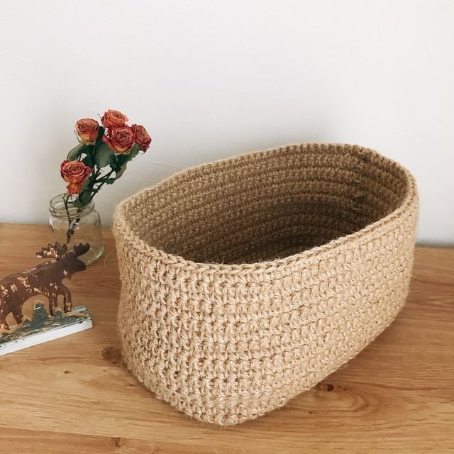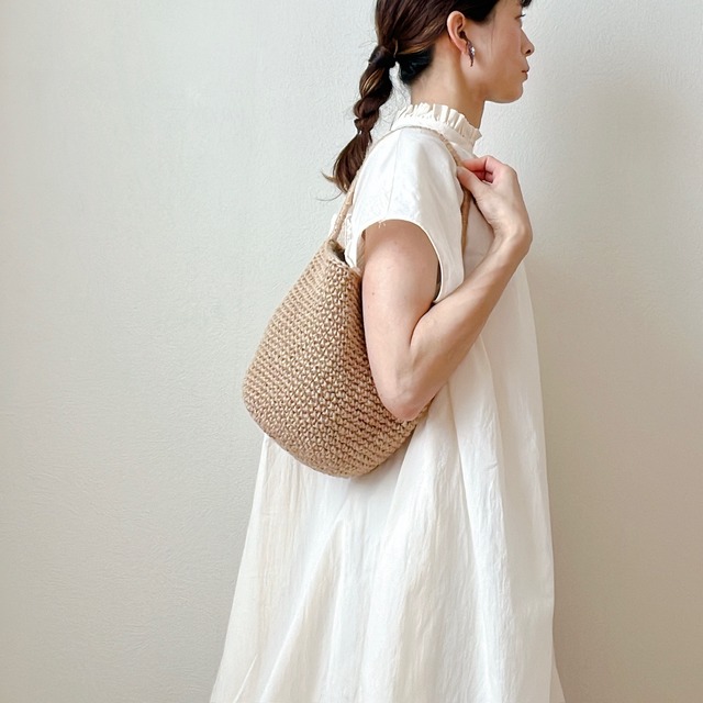 一緒に細いピンクの麻糸を編み込んだ、 肩にかけられる【麻ひものカゴバッグ】 本体は麻ひもを手編みしています。 一緒に細いピンク色の麻糸を編み込んでおり、 よく見るとほんのりピンク色に見えます。 カゴバッグはハンドバッグ型が多いですが、 便利な肩にかけられるタイプにしています。 持ち手は麻ひもをぐるぐると巻きつけており 丈夫な仕上がりです。 .......... ≪素材≫ 本体:麻ひも、麻糸 ≪サイズ≫ 縦 22cm 横 26cm(平置き) マチ 14cm 持ち手 44cm 重さ 250g ≪お手入れ方法≫ 手編みの商品ですので、重いものを入れると 伸びる可能性がありますので、ご注意ください。 汚れた場合は、中性洗剤を含ませた布で ポンポンと叩いたら、きれいな濡れタオルで 再度ポンポンと叩いてください。 持ち手は、濡れタオルで拭いてください。