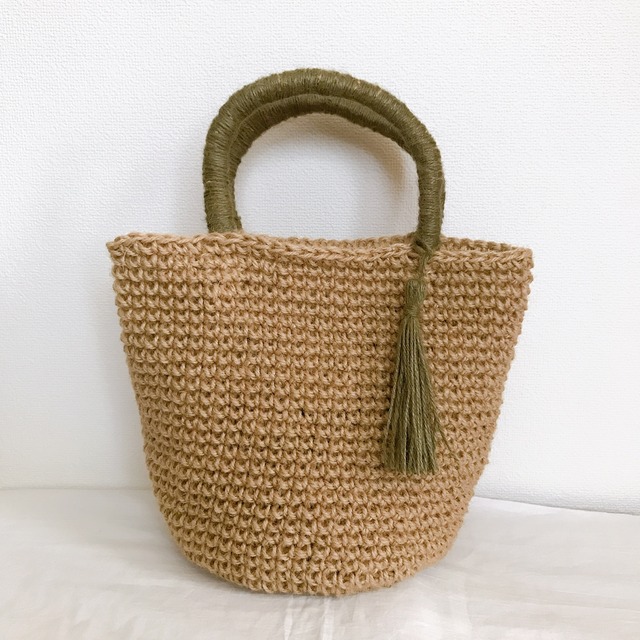 美しいイエローをコーディネートの差し色に 丁寧に手編みした【かごバッグ】 美しい色に定評のある麻ひもを 一目一目丁寧に手編みしました。 オレンジ色のフリンジは、 洋服に使われる上質な布をカットして 一つずつ手作業で取り付けています。 持ち手は竹製のものを使用しています。 .......... ≪素材≫ 本体:麻ひも、綿麻 持ち手:竹 ≪サイズ≫ 縦 19cm 横 22cm マチ 13cm 重さ 265g ≪お手入れ方法≫ ≪お手入れ方法≫ 手編みの商品ですので、重いものを入れると 伸びる可能性がありますので、ご注意ください。 汚れた場合は、中性洗剤を含ませた布で ポンポンと叩いたら、きれいな濡れタオルで 再度ポンポンと叩いてください。 持ち手は、濡れタオルで拭いてください。
